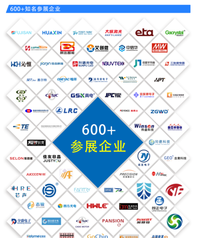 1.508家国内外知名参展企业:炜盛电子、沁恒微、深圳爱普特、巨晟科技、泰芯半导体、华芯微特、四方光电、苏州慧闻、艾礼富、雨菲电子、易通自动化、福义乐、竞沃电子、乐山无线电、三友联众、芯创、温达电子、双鹿智能、瑞比德传感、道合顺传感、馨源电子、广芯电子、华芯科技、航天电机、展讯智能、捷泰达等;