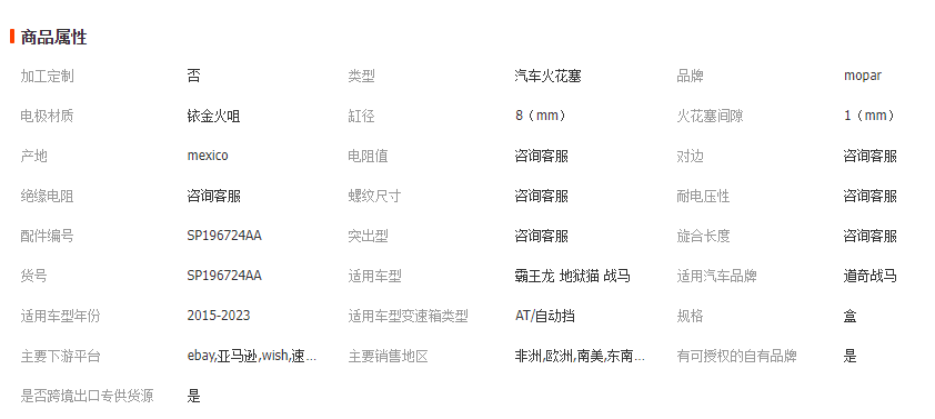 mopar正品适用于道奇霸王龙 道奇地狱猫6.2L 6.4L火花塞