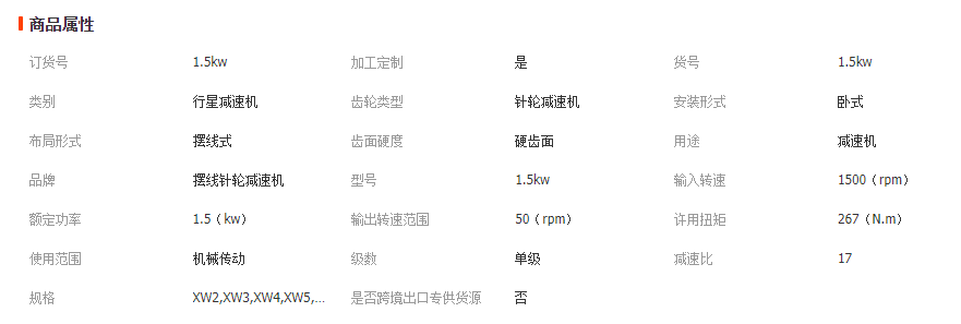 摆线针轮减速机 1.5kw卧式直连硬齿面单级速比行星摆线针轮减速机
