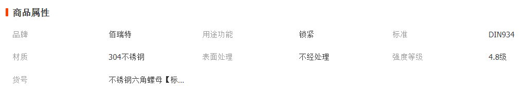 | 名称 | 六角螺母 | 表面处理 | 未经处理 |