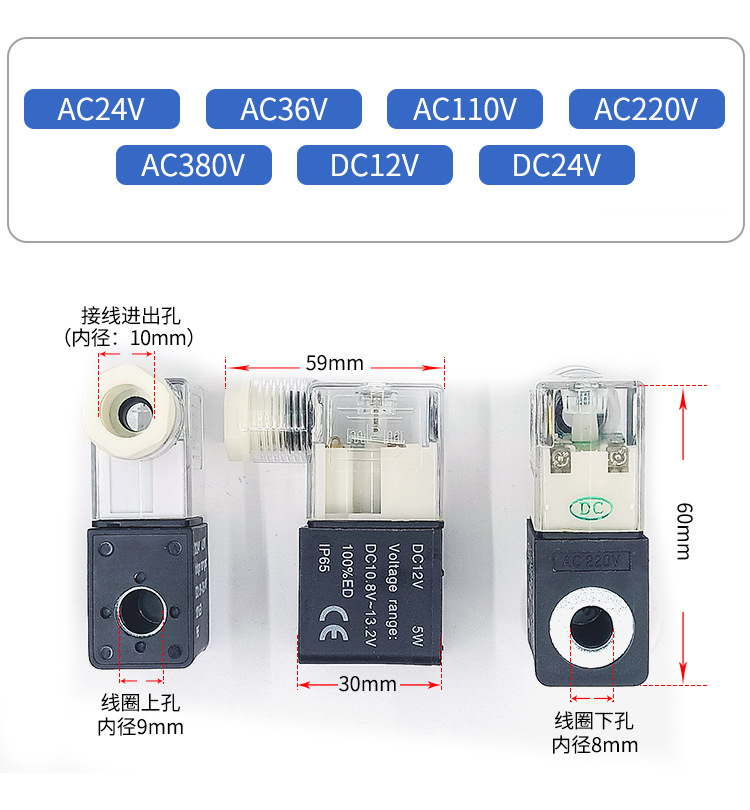 厂家直供亚德客4V/4M电磁阀线圈DC12V/24V/AC220V 气动电磁阀配件