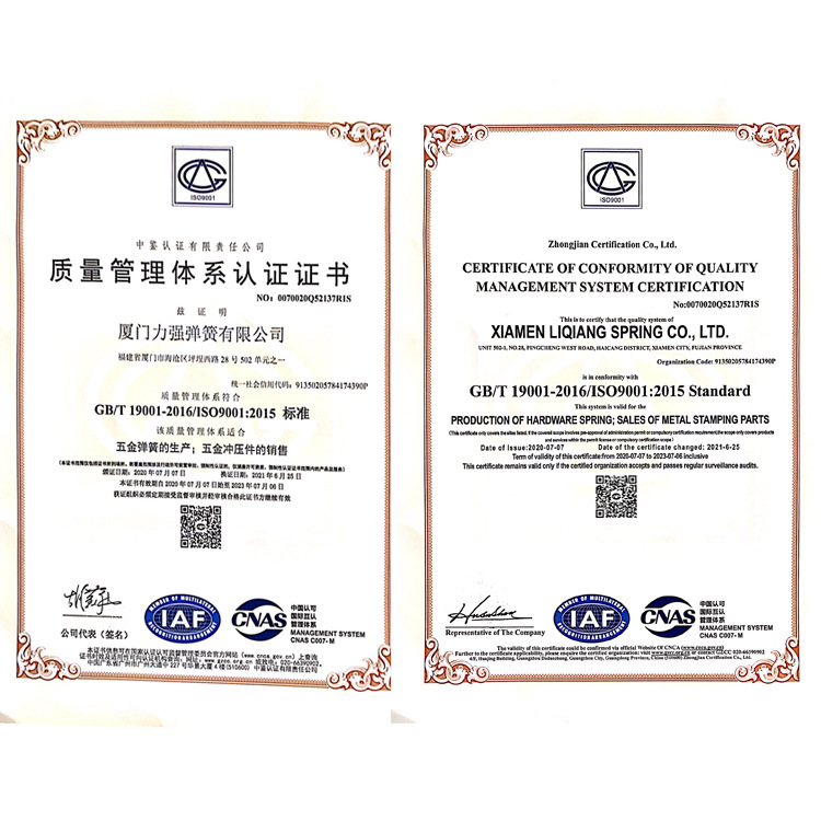 厦门力强弹簧有限公司,引进国外先进的生产及检测设备;有从事弹簧生产十多年的技术人员数名;原材料产地有日本、韩国、台湾等地进口不锈钢、琴钢丝、磷铜等。能生产各种规格及高难度的压力弹簧、扭力弹簧、拉力弹簧及异形弹簧。本公司产品适用范围有:机电类、汽车类、玩具类、电器类、仪器仪表类.