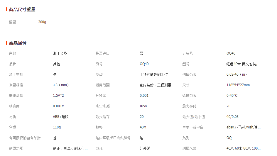 光测距仪40米红外线测量仪量房仪电子尺激光尺手持式激 光测距仪