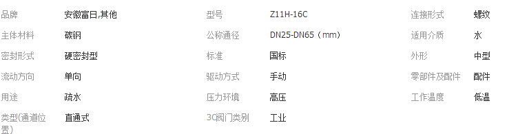 安徽阀门 Z11H-16C钢制内螺纹楔式闸阀 安徽富日阀门