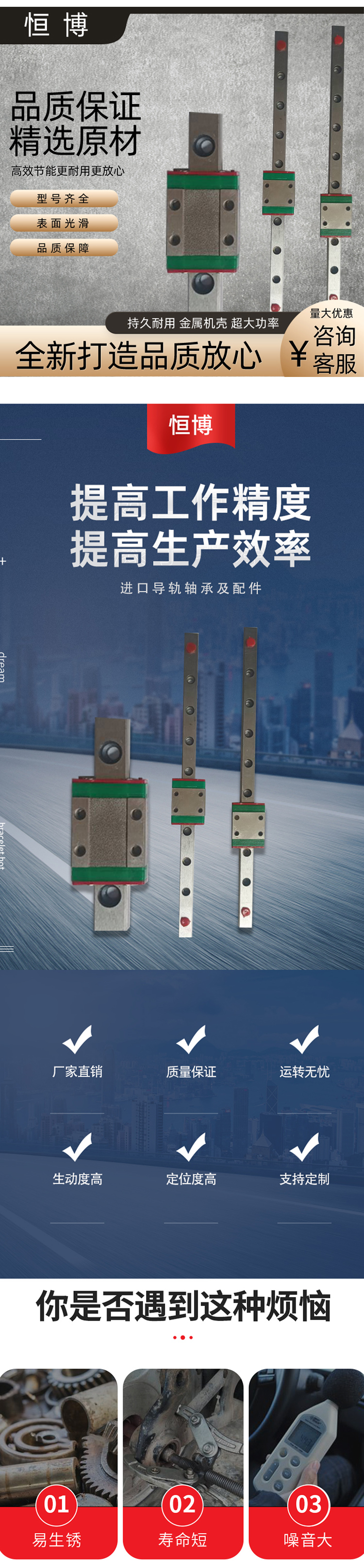 恒博 合金钢微型直线导轨台稳精机精密自动化专用