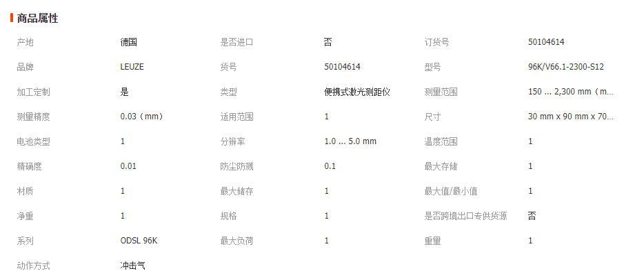 德国劳易测原装进口LEUZE激光测距传感器ODSL 96K/V66.1-2300-S12 50104614