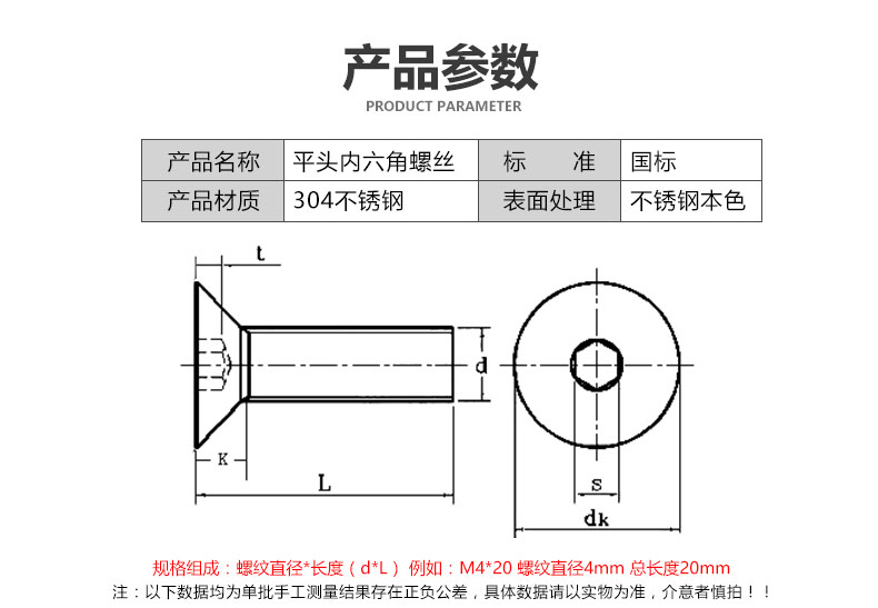 | 公称直径 | M2 | M2.5 | M3 | M4 | M5 | M6 | M8 | M10 | M12 | M16 | M20 | |