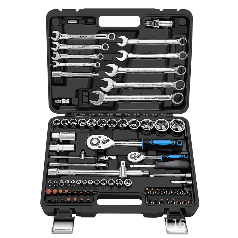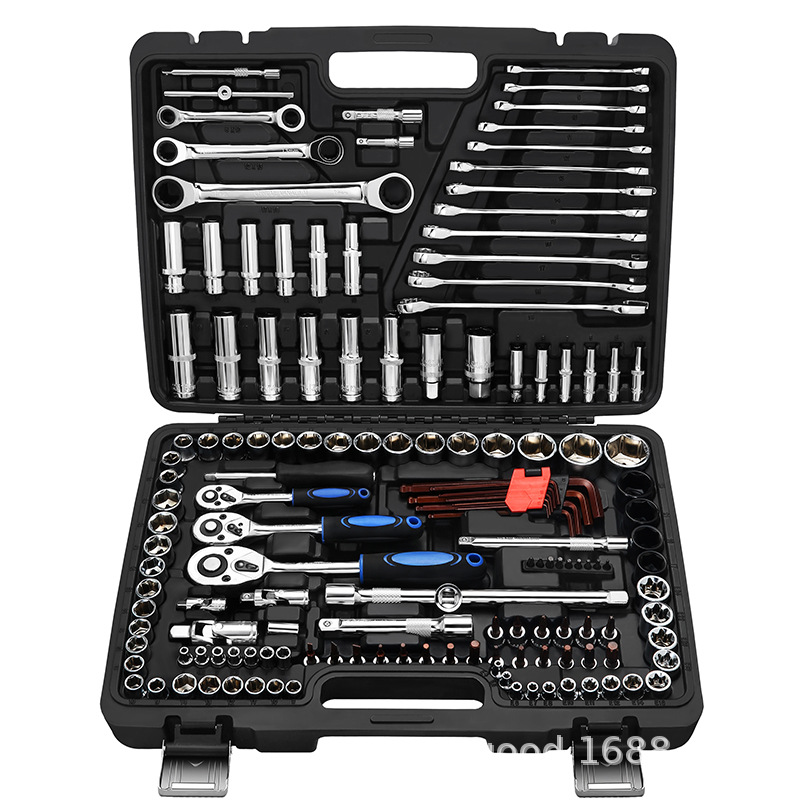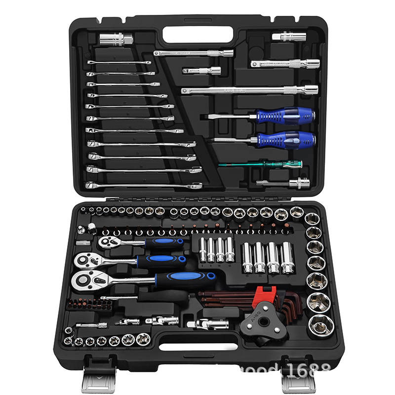 121件套厂家直销多功能黑盒24齿直柄棘轮扳手套筒套装手动汽修工具