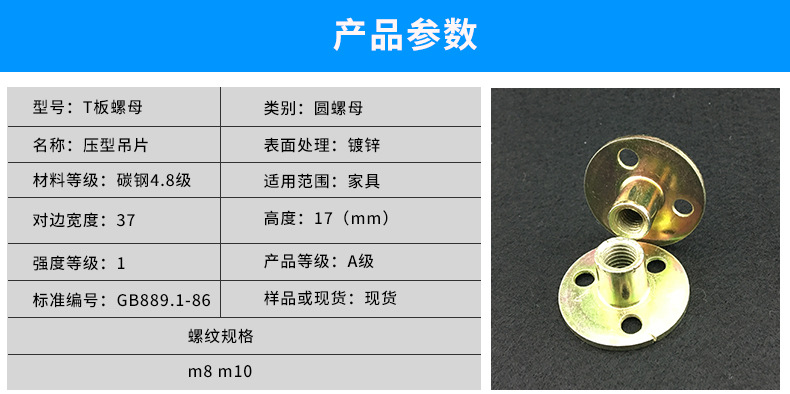 铁板三孔螺母 冷镦三孔元母 m8m10夹板螺帽T母家具五金