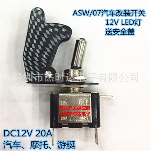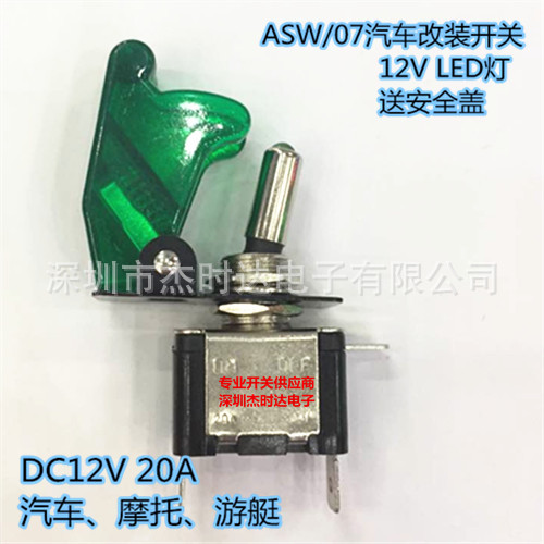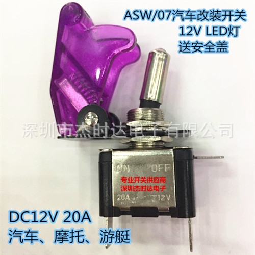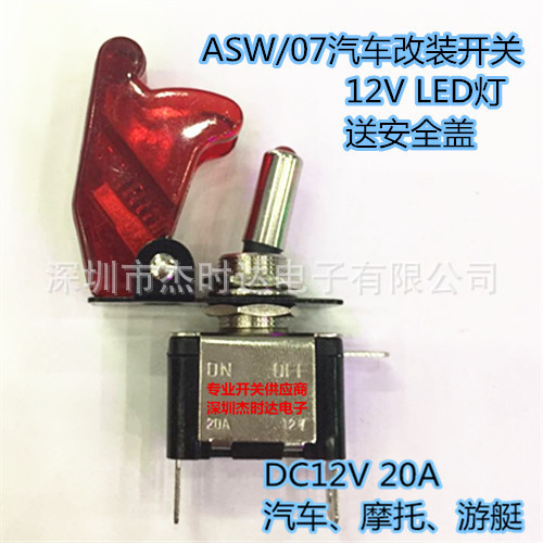 供应 多色ASW07防触盖钮子开关 带灯带盖3脚2档飞机开关批发