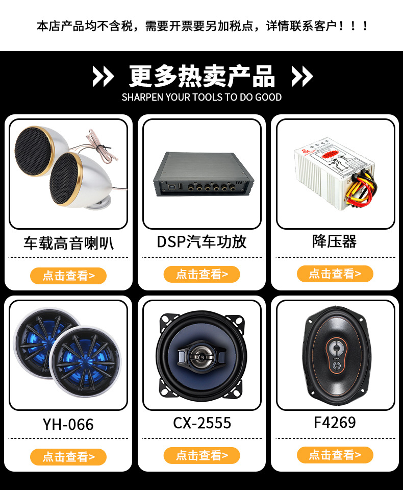 汽车音响喇叭;车载功放;车载多功能方向盘;车载导航;行车记录仪