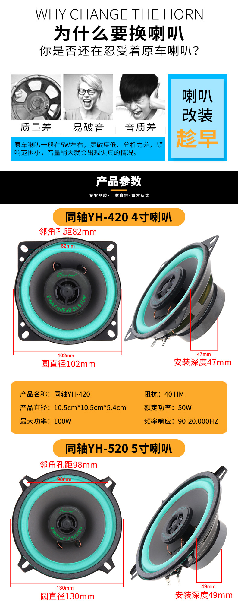 汽车喇叭车载HiFi同轴4寸 5寸 6寸喇叭扬声器汽车车门立 体全频