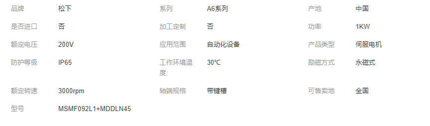 正品松下A6低惯量1KW伺服电机驱动器MSMF092L1+MDDLN45套装