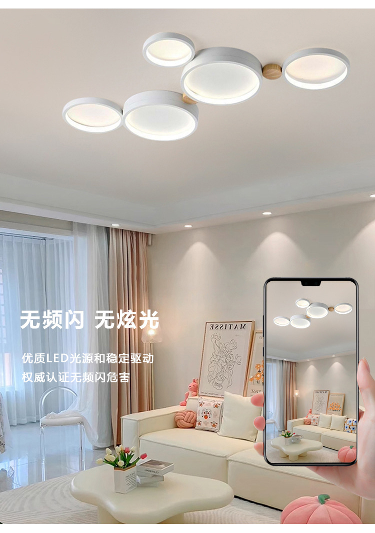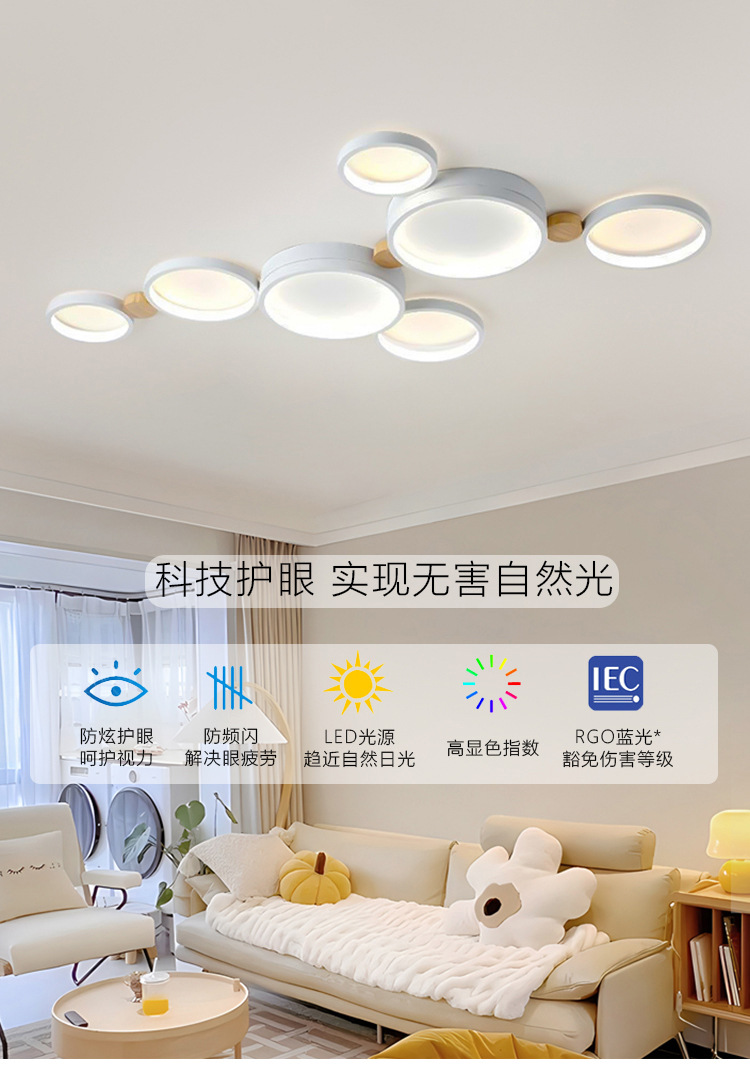 北欧客厅灯简约现代卧室灯书房儿童房极简护眼奶油风吸顶灯智能灯