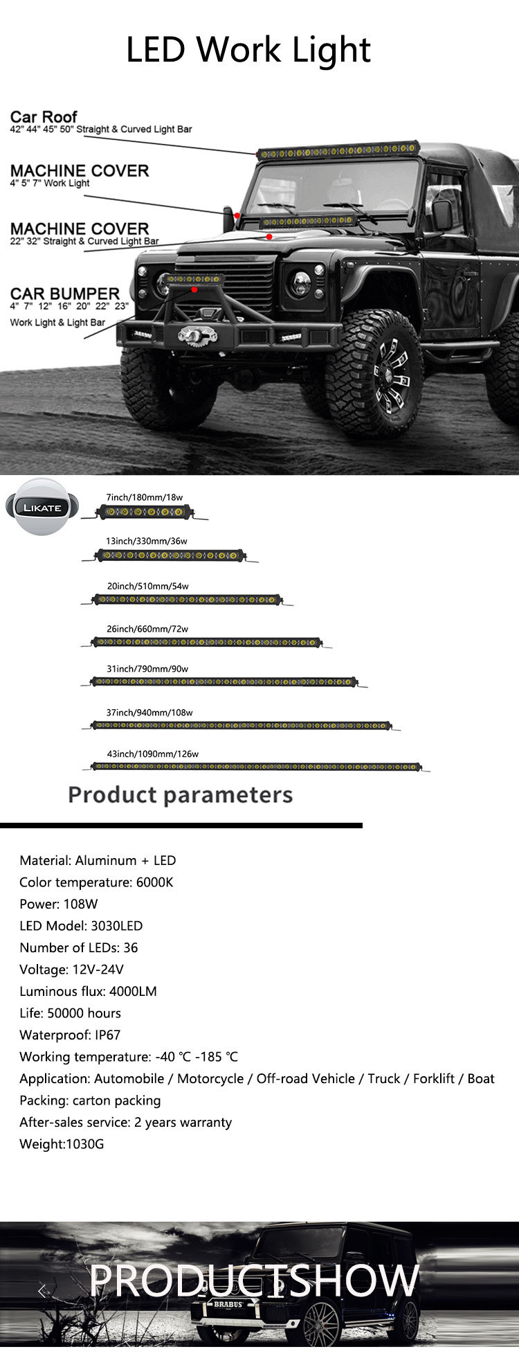 新款大功率LED射灯 车顶灯 汽车越野车改装长条灯射灯