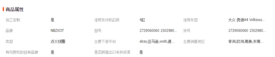 适用于Volkswagen Audi大众 奥迪A4 A6 点火线圈2729060060