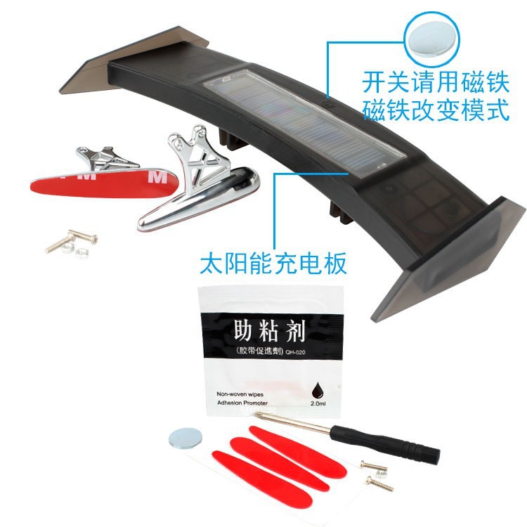 汽车太阳能无损改装尾翼通用警示灯迷你小尾翼免打孔装饰车爆闪灯
