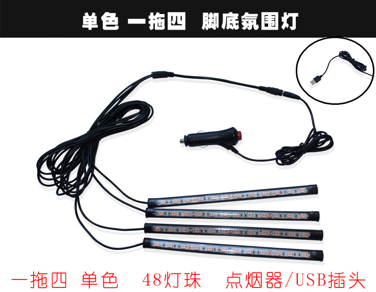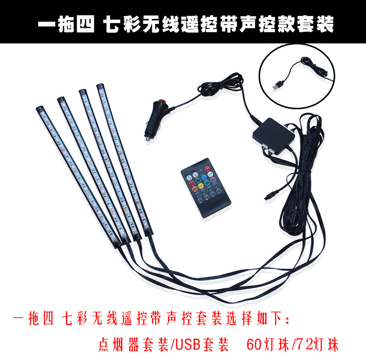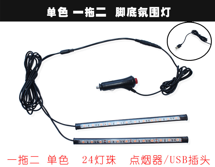 汽车LED灯条车内脚底灯室内音乐声控装饰灯七彩气氛灯节奏氛围灯