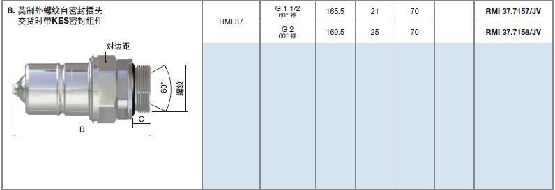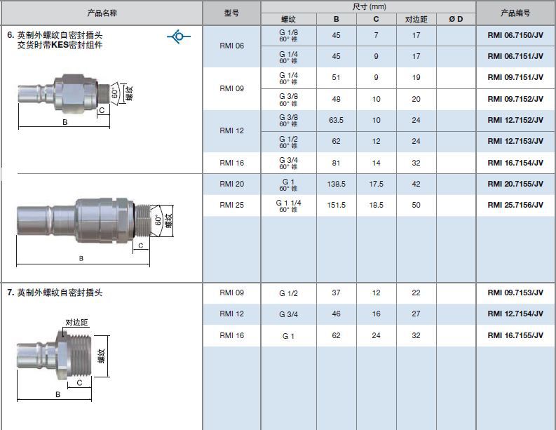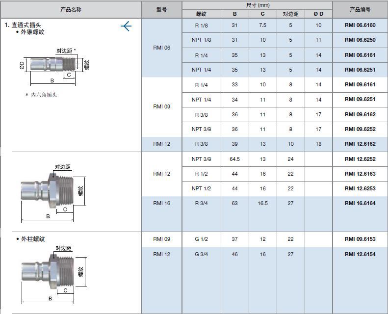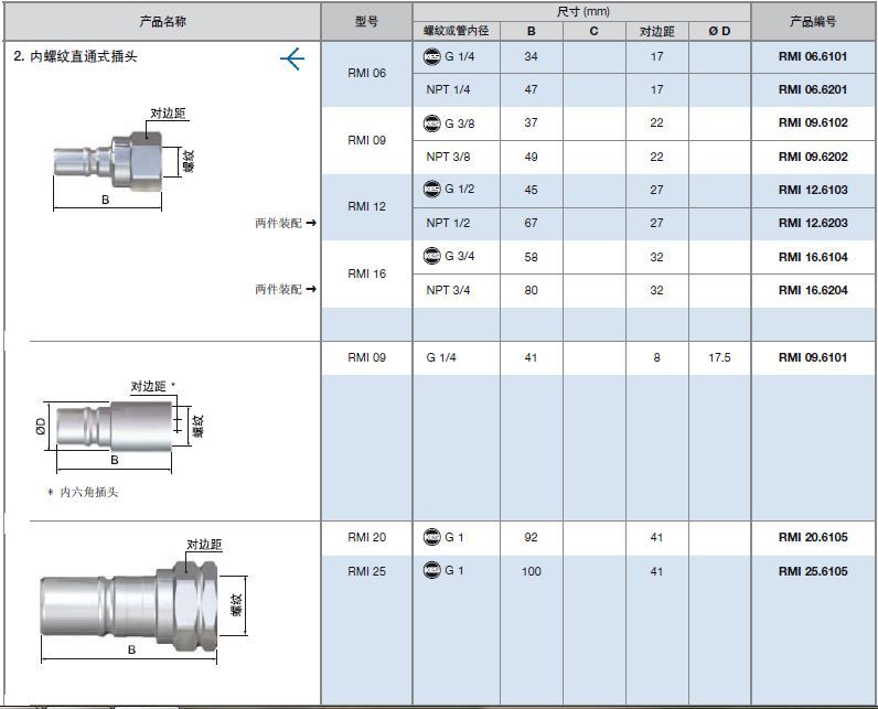 STAUBLI带阀直接头:RMI06.1808/JV RMI09.1812/JV RMI12.1816/JV RMI16.1819/JV