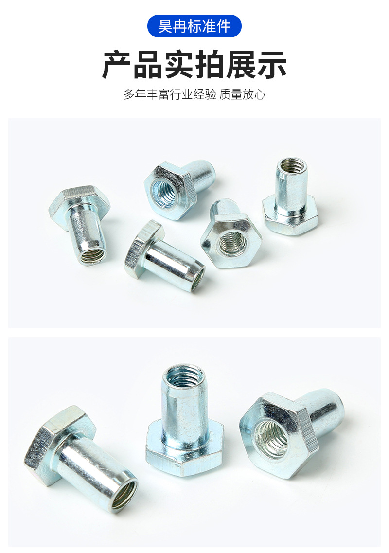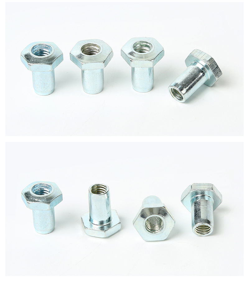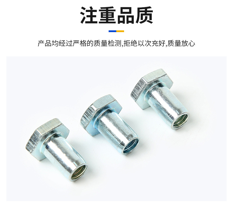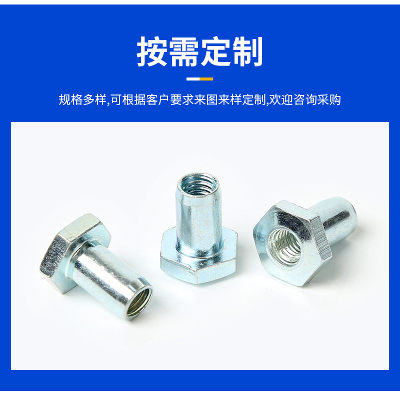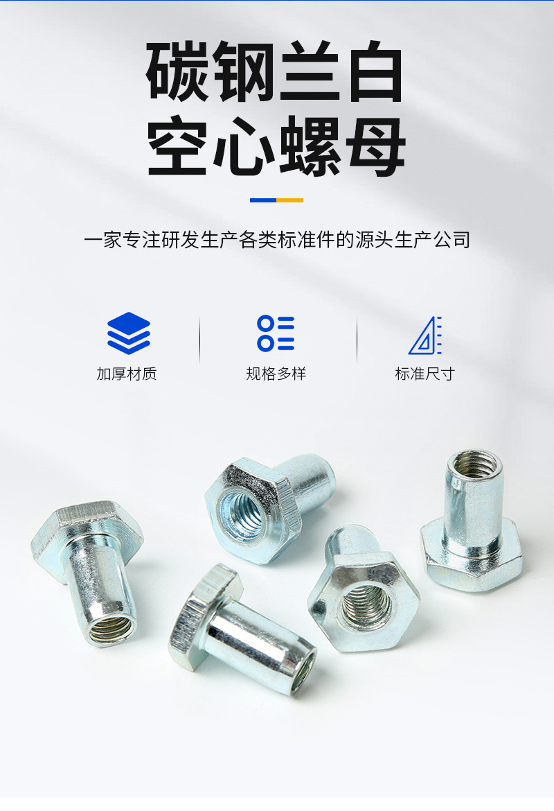 碳钢兰白空心螺母 六角T型螺母 六角打孔螺母 空心穿线接头螺母