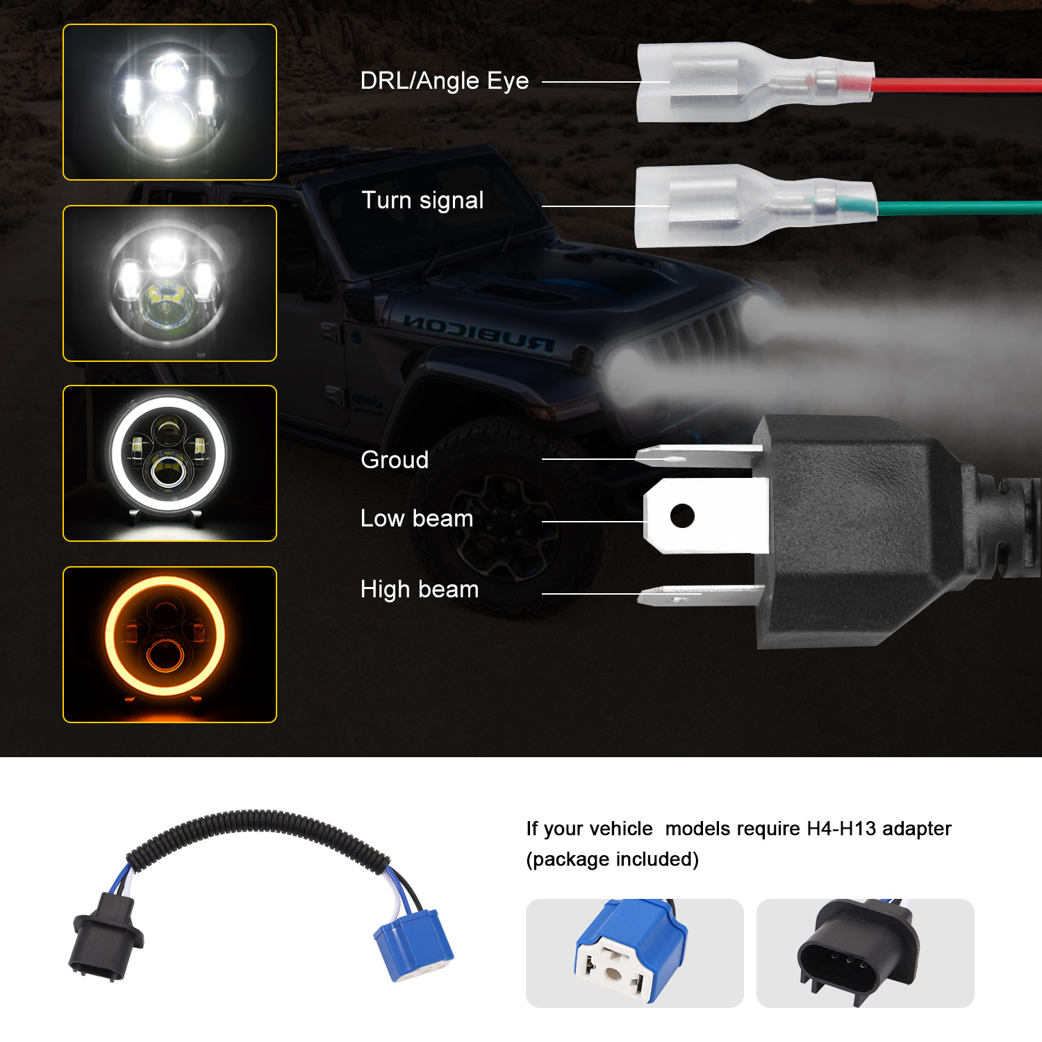 颜色7英寸牧马人大灯天使眼(全圆),7英寸牧马人大灯天使眼(半圆)
