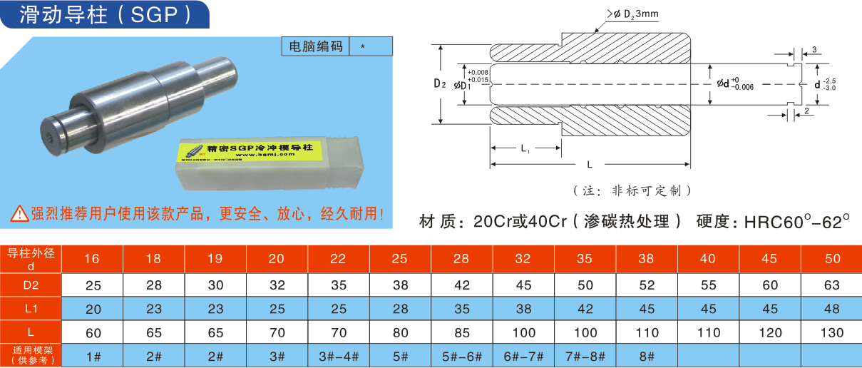 罗门 SGP滑动导柱 外导柱组件 滑动导向件 冲模导柱 Φ25*90-300