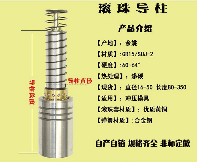 罗门SRP滚珠导柱滚动导柱精密冲压模外导柱冷冲导向件¢16*80-160
