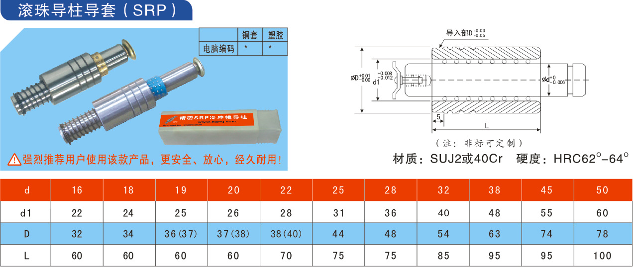 罗门SRP滚珠导柱滚动导柱精密冲压模外导柱冷冲导向件Φ19*80-160