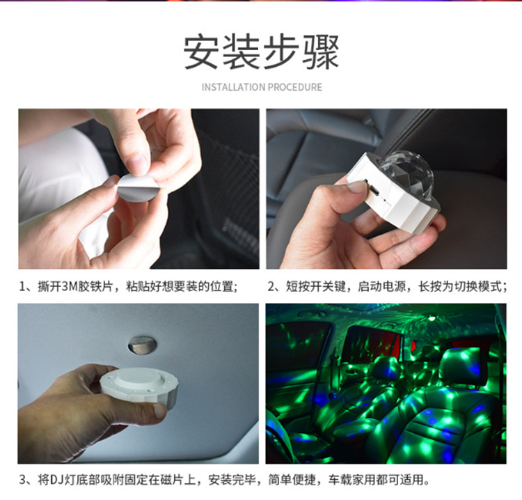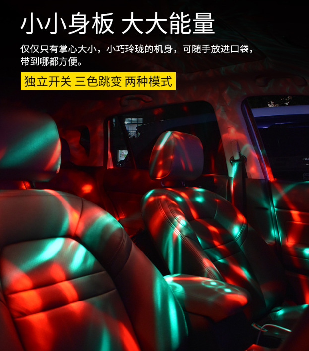 汽车氛围灯 USB充电声控led舞台装饰灯 迪斯科魔球圣诞音乐节奏灯