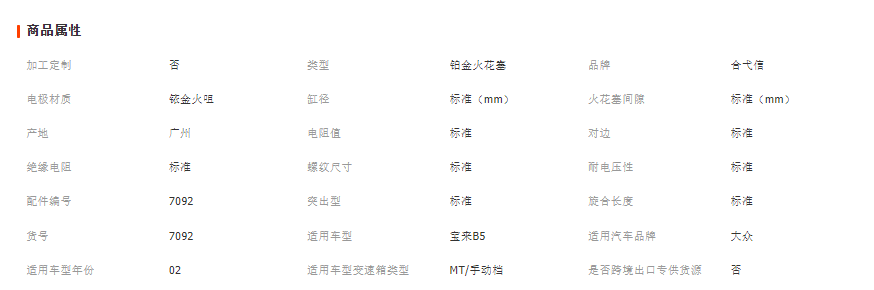 适用于大众宝来B5汽车小头铂金火花塞OE 7092 BKR6EGP火咀