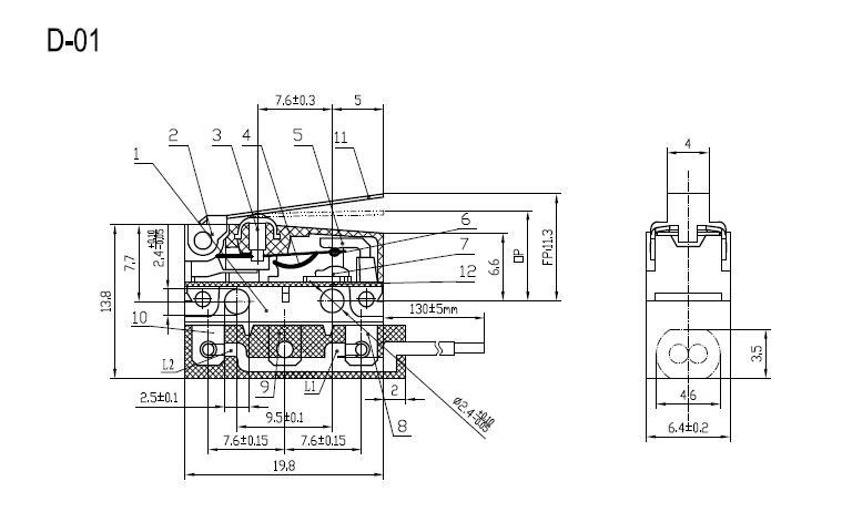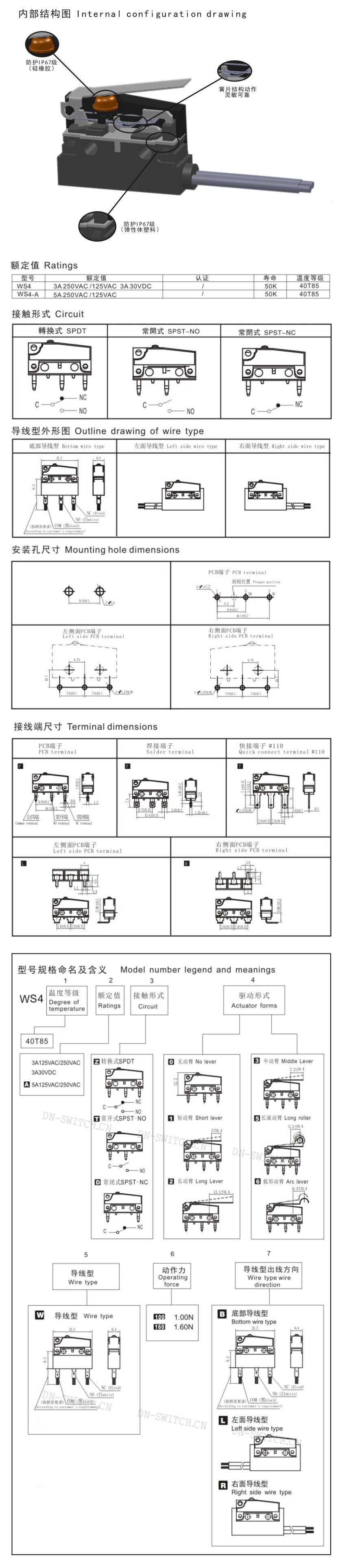 IP67防水微动开关WS4 新能源汽车充电枪 右出线带端子 汽车门锁