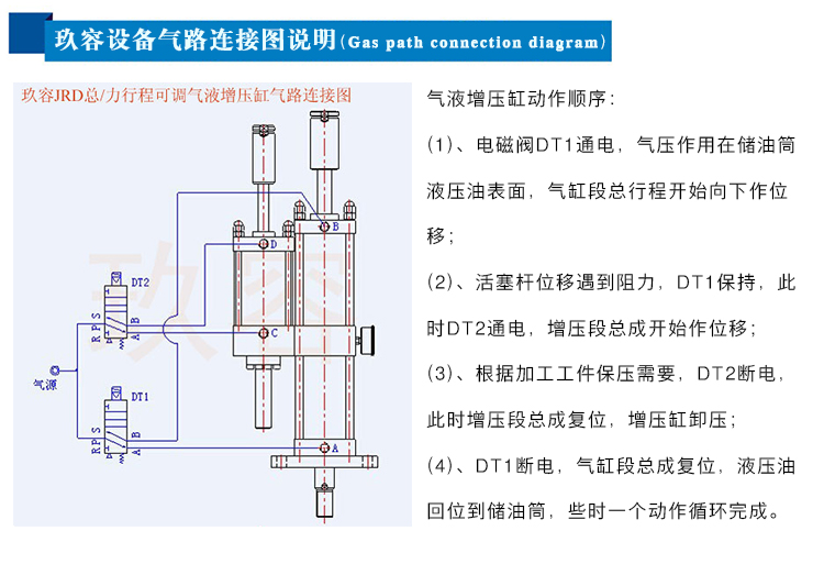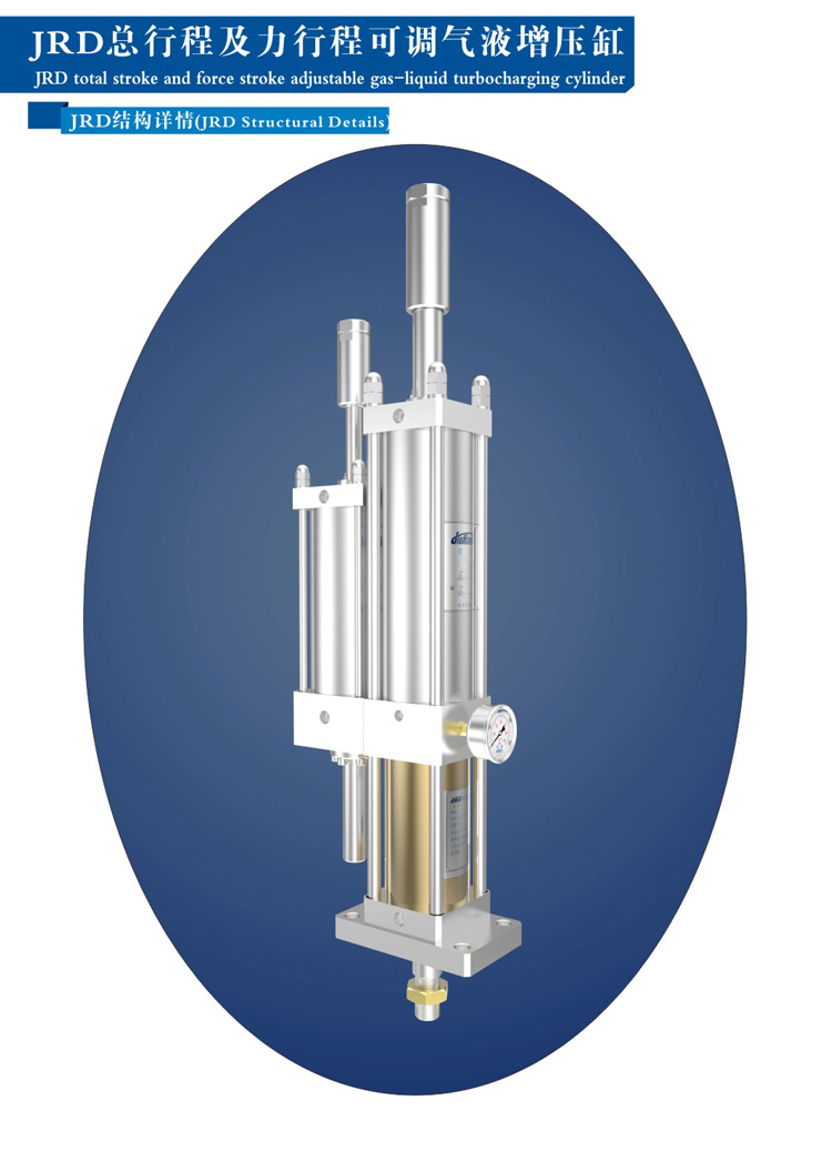 JRD总行程及力行程可调气液增压缸最大特点就是在于预压行程和增压行程都可按需精确调节。客户设置最大预压行程及最大增压行程.然后根据不同的产品实际需求来自由调节行程的长短。本产品设置为2个可调螺母,操作方便,稳定且快速。