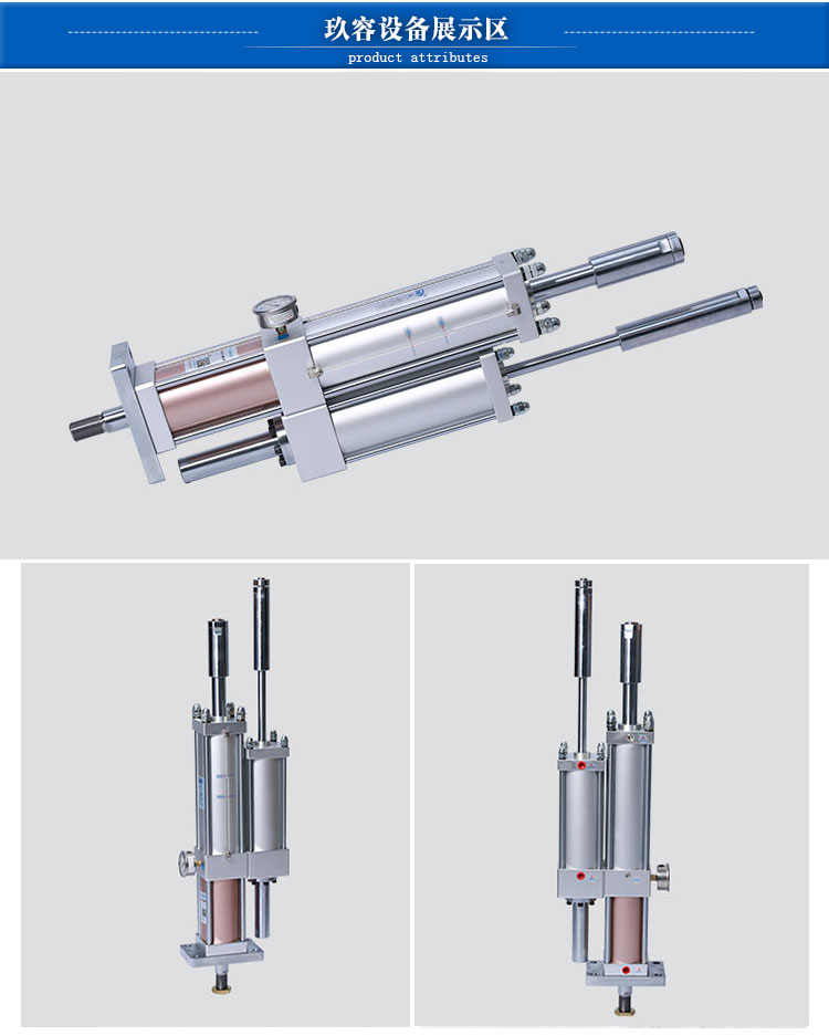 气液增压缸可用于冲孔,裁断,装配,型材碰焊,铆压铆合,铆接锻压,折弯型材,挤压成型,压平校直,压印标记,塑料熔接,修毛边等;在电声设备,烫金机械,高周波机械,热压成型机械,低压注胶设备,锂电池设备,工程设备,电子产品,吹瓶机械,纸杯设备,印刷机械,塑料机械,橡胶机械,压力机械,冶金机械,轴承机械,塑胶机械,服装机械,铆接机械,鞋机机械,制袋机械,制药机械,非标自动化设备等等行业中得到广泛应用。