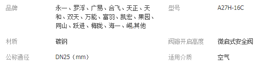 A27H-16C DN25 锅炉安全阀 法兰式安全阀 弹簧式安全阀 广易