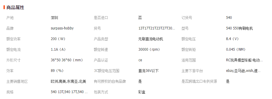 | SP-054000-19 | 540有刷电机-黑色 | 540车用可换碳刷马达23T 3-Slot RPM:19000 IO:1.7A ¢3.175*12mm 扁位0.4mm深(16AWG蓝黄线配子弹公头)RoHS |
