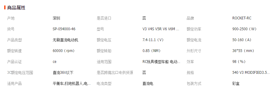 SURPASS Hobby2017年最新推出ROCKET 540-V3无刷极速马达,符合ROAR(美国)竞赛要求及IFMAR规则,提供MODIFIED 3.5-9.5T及SPEC10.5T 13.5T 17.5T 21.5T 25.5T各种T数,适合F1、1/12、1/10电越、漂移和电动房车赛事使用。CNC6061铝合金外壳,双感应线接口,铝制尾盖;超低内阻,提高马达性能同时降低马达工作温度,优化了散热效能,可拆装和可调进角。SURPASS还有这款马达的540-V3各种转子单独发售。