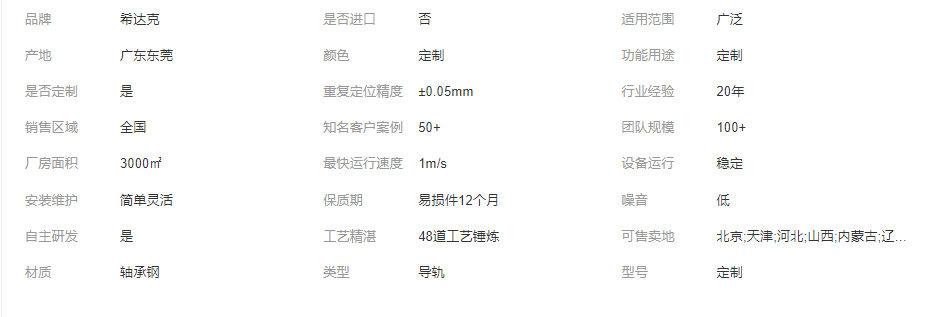 希达克 自主研发 圆弧导轨 设备运行平稳 多种规格可选