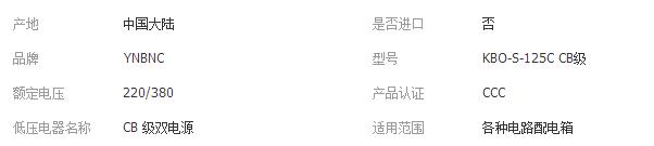 供应控制与保护开关双电源 KBO-S-125C CB级低压控制器经久耐用