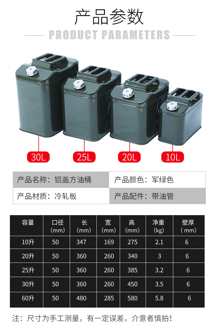 便携式备用油箱 绿色铁皮扁油桶10升20升30升50升 汽油桶备用油箱