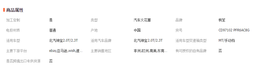 跨境供应铱铂金火花塞PFR6AC8G 95734适用于北汽绅宝2.0T/2.3T