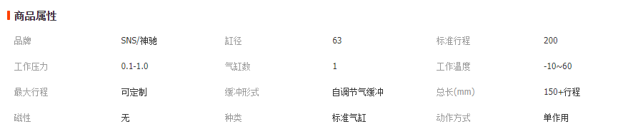 SNS神驰气动SC标准气缸铝合金拉杆气动执行元件sc63x25x50x75x100