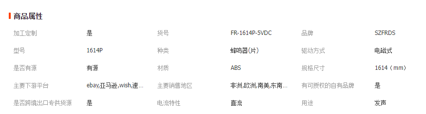 芙蓉电声 电磁式直流驱动 插针式峰鸣器 1614有源蜂鸣器5V BUZZER