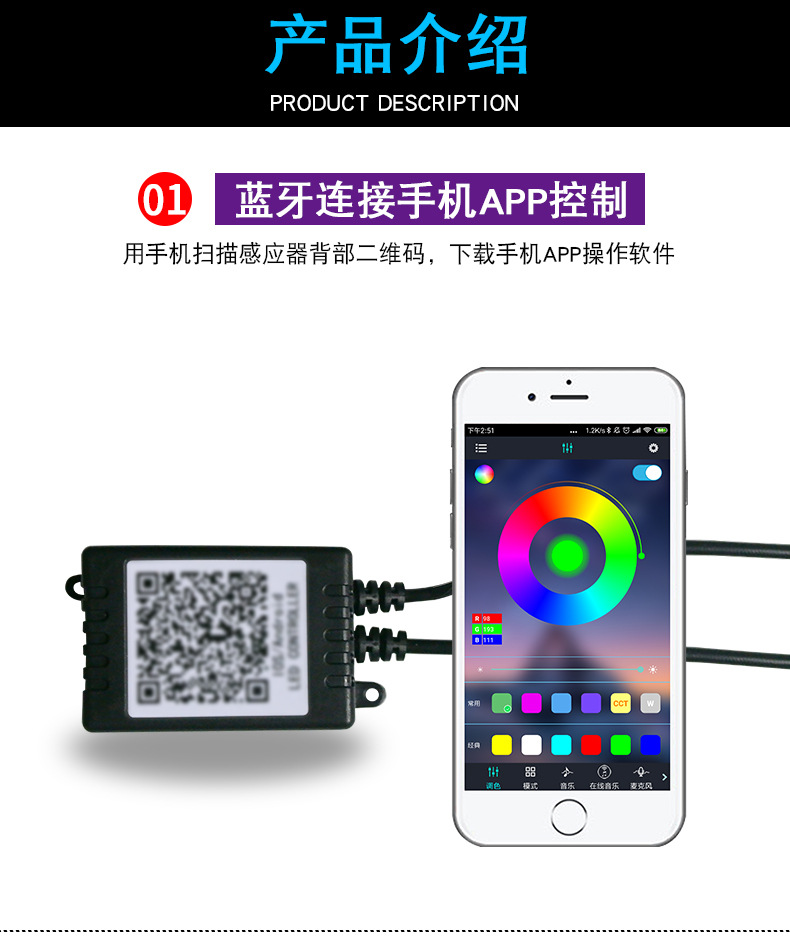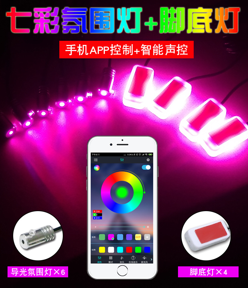 汽车改装LED光导氛围灯 气氛灯 七彩冷光线装饰灯手机app控制声控