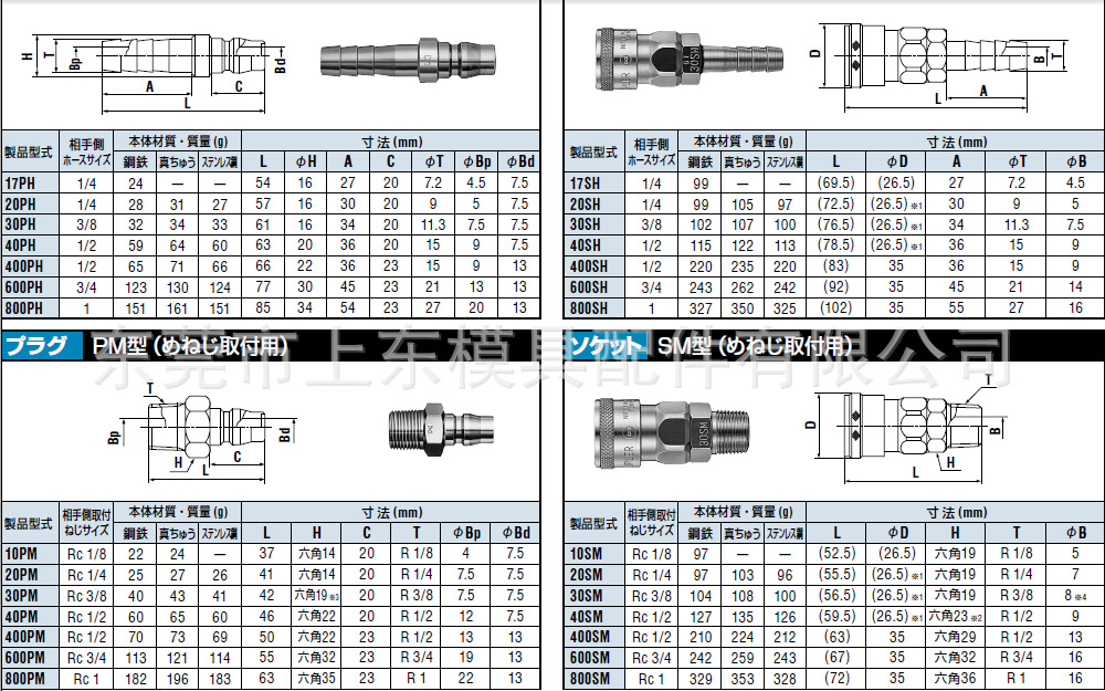 东莞市上东模具配件有限公司位于中国模具名镇东莞长安,自2009年起专业致力于美国DME、DME-EOC、PCS、PARKER、PROGRESSIVE、法国STAUBLI、西班牙CUMSA、德国HASCO、RABOURDIN、MEUSBURGER、LUDECKE、STRACK、HARTING、SUPERIOR、OPITZ、日本MISUMI、PUNCH、LKM、NITTO、SANKYO快速接头、水嘴、隔水片、日期章、限位夹、定位块、顶针、导套、导柱、弹簧、行程开关等模具配件以及非标零件。我公司一直以质量求生存、以信誉求发展、以速度求效率、互惠互利的经营宗旨,在行内得到了众多模具名企的肯定,我们期待与您携手共创美好明天。