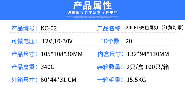 20LED双色尾灯 红黄灯罩卡车货车尾灯 高亮刹车灯挂车转向灯KC-04