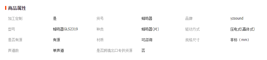 GLS2319有源压电式蜂鸣器高分贝直流蜂鸣器烟雾烟温可燃气蜂鸣器