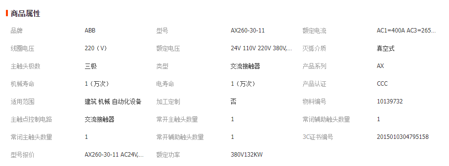 ABB代理商 供应ABB交流接触器AX260-30-11