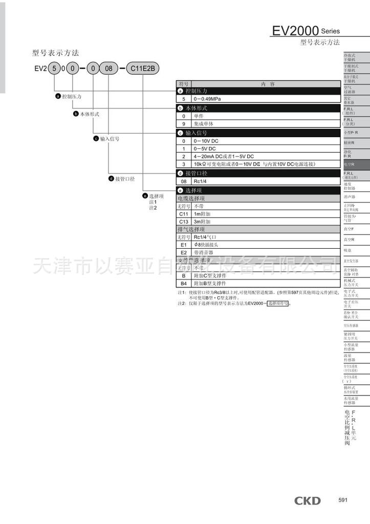天津 日本CKD比例电空减压阀中流量 EV2500-108--B4 替代ER系列
