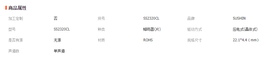 SS2320CL压电无源引线蜂鸣器 深圳厂家直销