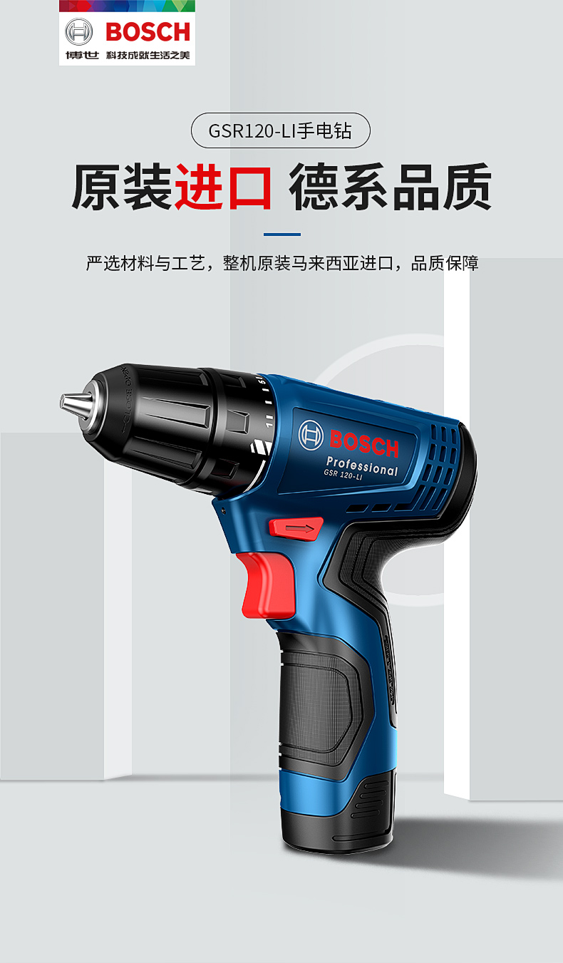 博世充电式手电钻12V锂电池充电钻GSR120-LI家用多功能电动螺丝刀